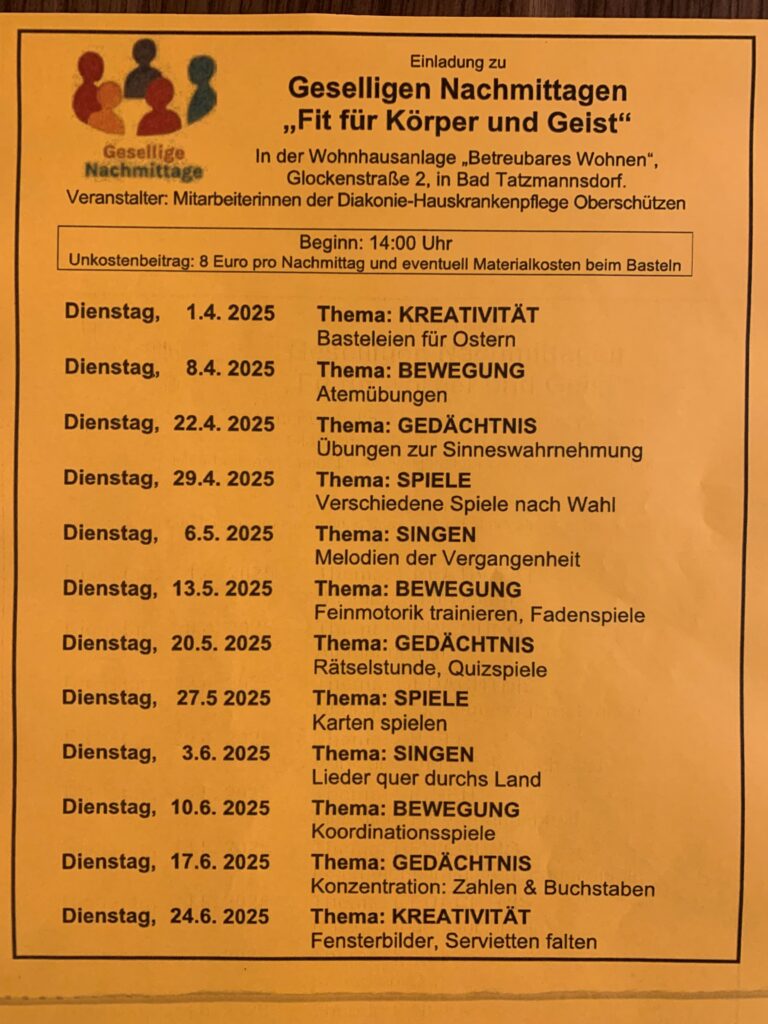 Diakonie – Gesellige Nachmittage, 2. Quartal 2025 in Bad Tatzmannsdorf 30. März 2025 Dietmar Stipsits Veranstaltungen
