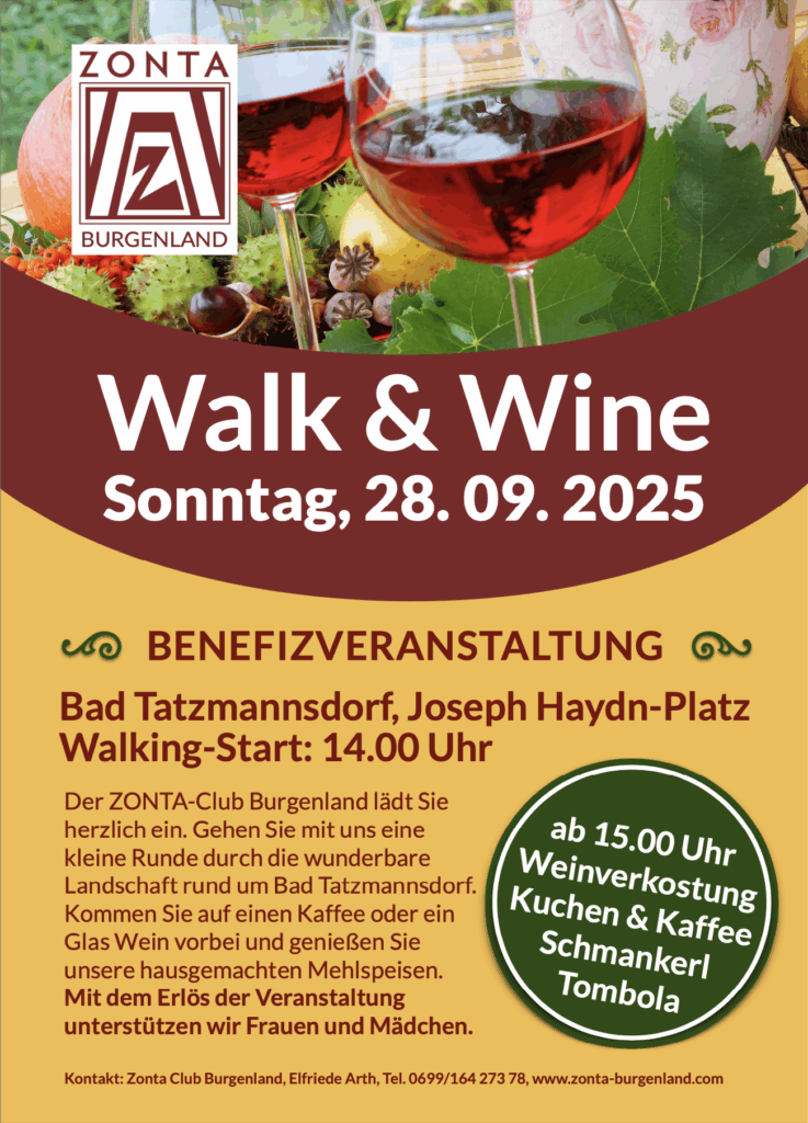 Walk&Wine (Zonta Club Burgenland), 28.09.2025, ab 14.00 Uhr, Bad Tatzmannsdorf 5. September 2025 Dietmar Stipsits Veranstaltungen