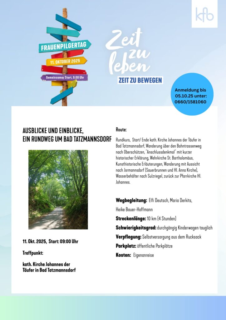 Frauenpilgertag, 11.10.2025, 09.00 Uhr, Bad Tatzmannsdorf 20. September 2025 Dietmar Stipsits Veranstaltungen
