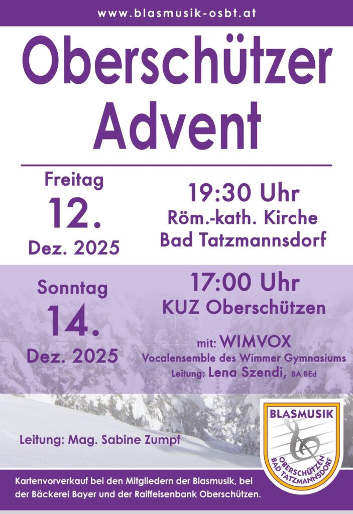 • Oberschützer Advent, 12.12.2025, 19.30 Uhr, röm.-kath. Pfarrkirche Bad Tatzmannsdorf