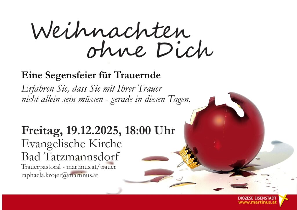 Ökumenischer Gottesdienst „Weihnachten ohne dich“, 19.12.2025, 18.00 Uhr, evang. A.B. Pfarrkirche Bad Tatzmannsdorf 19. November 2025 Dietmar Stipsits Veranstaltungen