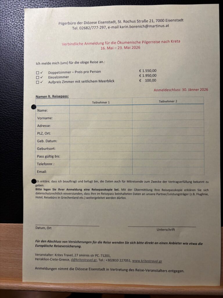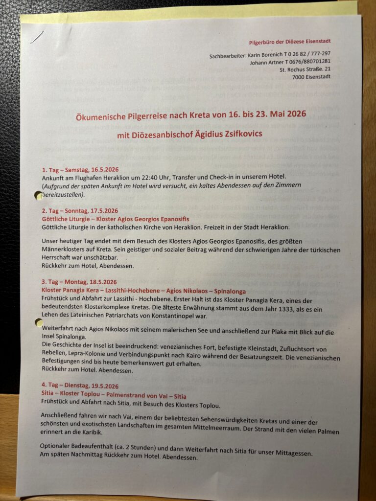 Ökumenische Pilgerreise vom 16. – 23.05.2026 mit Diözesanbischof Dr. Zsifkovics 19. Dezember 2025 Dietmar Stipsits Veranstaltungen