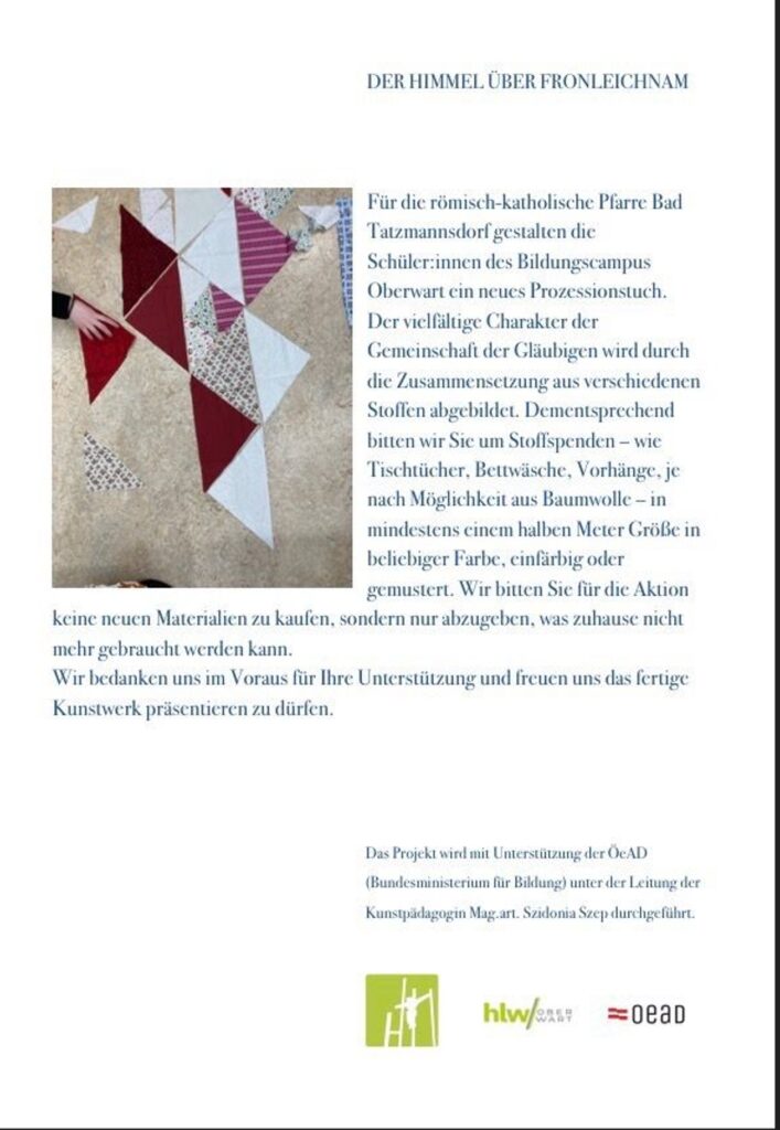 Die Stoffe können im Vorraum der Pfarrkirche Bad Tatzmannsdorf in den Korb hineingegeben werden.