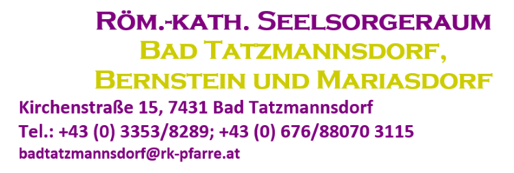 Ich möchte in Erinnerung rufen, dass die Filialgottesdienste am Samstag in der Winterzeit (!) immer um 18.00 Uhr stattfinden, und bitte um Entschuldigung, wenn im Pfarrblatt diesbezügliche Tippfehler passiert sind. Wie im Pfarrblatt immer geschrieben steht, weise ich auch darauf neuerlich hin: „Bitte beachten Sie immer die Wochenordnung!“, Pfarrer Dietmar.