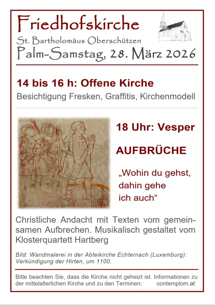 „Offene Kirche“, 28.03.2026, Friedhofskirche Oberschützen 19. März 2026 Dietmar Stipsits Veranstaltungen
