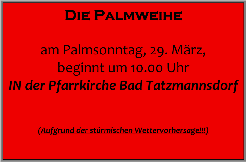 ACHTUNG!!! – Palmweihe am 29.03.2026 um 10.00 Uhr IN der Pfarrkirche Bad Tatzmannsdorf !!! 27. März 2026 Dietmar Stipsits Aktuelles